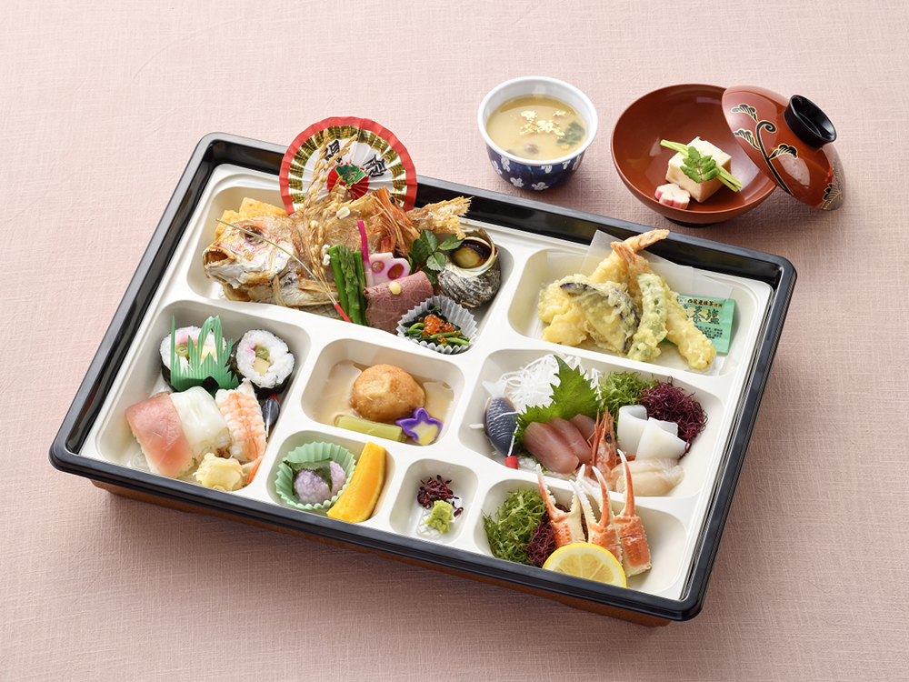 ※お吸い物と茶わん蒸しは使い捨て容器に具材を入れ、お吸い物だしはペットボトルにてお持ちいたします